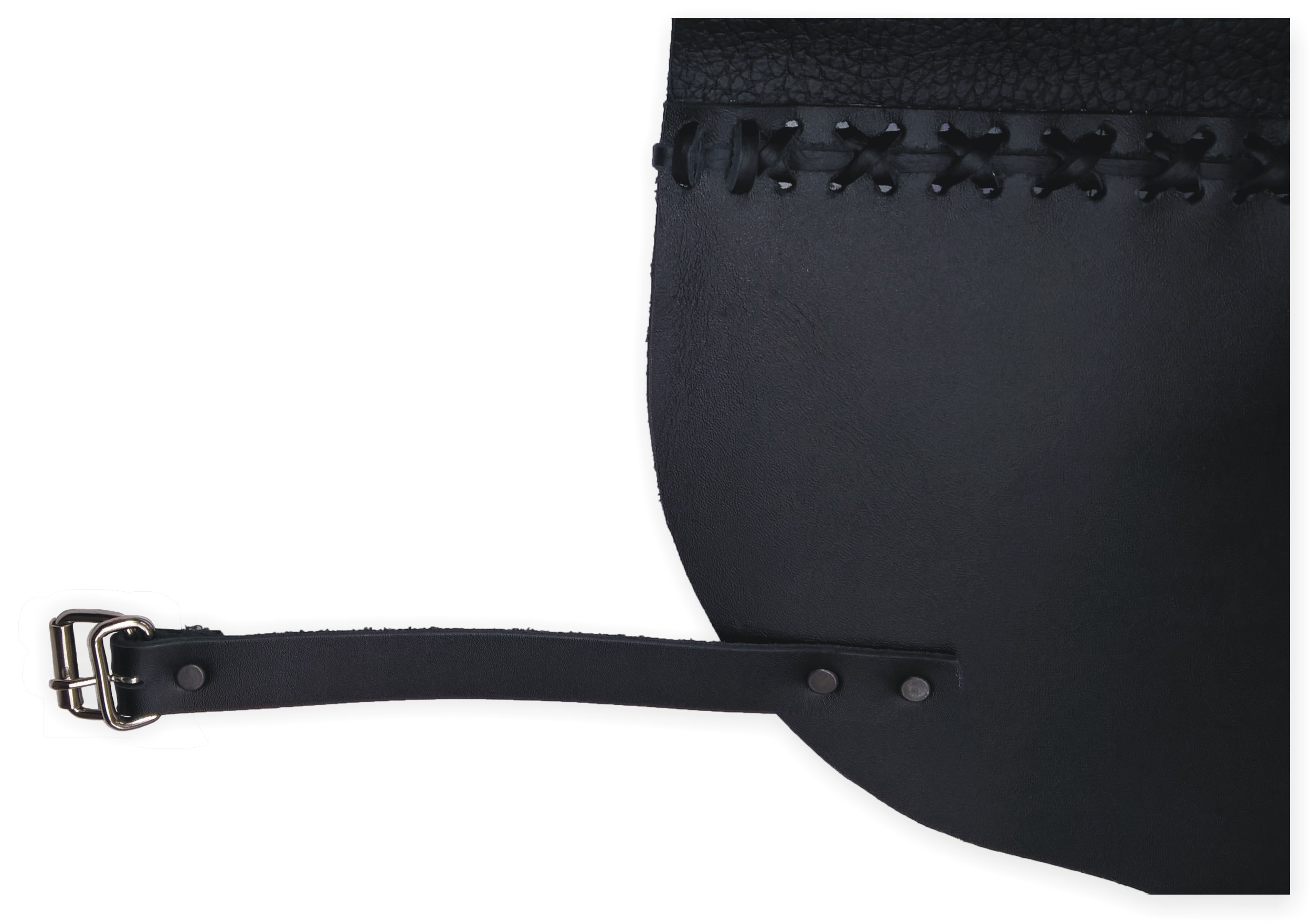 Všechny díly jsou spojené v předpokládaných nejzatěžovanějších místech ohybů do homogenního celku, který nevytváří záhyby a převisy zabraňující pohodlné práci. Spoje jsou lepené a sešité nití a koženou šňůrkou, která je fyzikálně i mechanicky odolnější než nitě, a zároveň vytváří výrazné designové detaily.