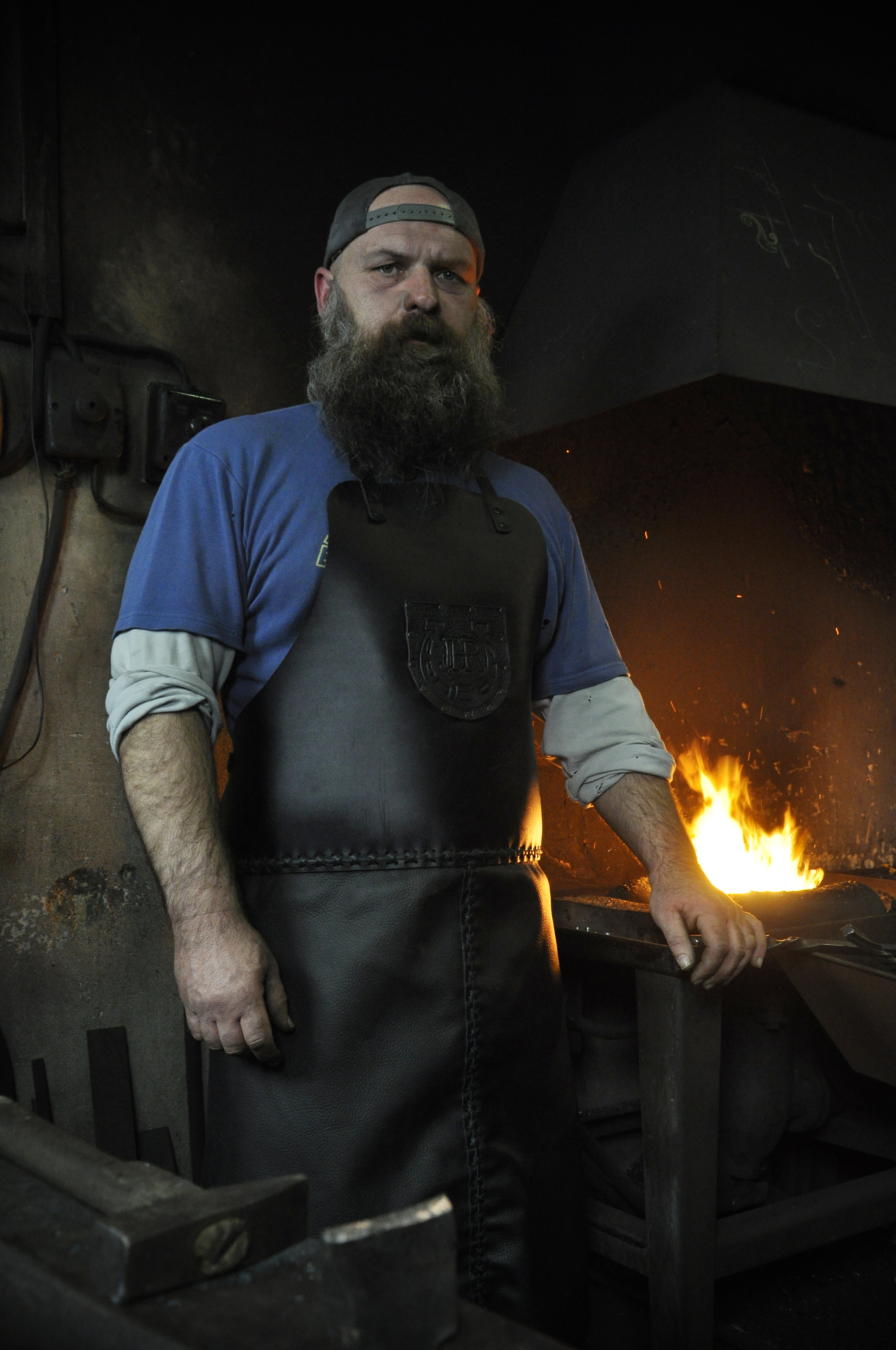 Zástěra je vyrobena ze tří kusů kůže tak, aby práce v ní byla co možná nejpohodlnější, ale přitom bezpečná. Je opatřena nastavitelnými řemínky s kovovými přezkami, takže její používání je pohodlné pro různé typy postav. Díky možnosti ozdobení logem nebo nápisem vyrobeným z kůže, případně jinými designovými doplňky je vhodná nejen pro práci v kovárně, ale také pro reprezentativní účely, jako jsou jarmarky, slavnosti, historické trhy ap. Zástěra byla navržena ve spolupráci s profesionálním kovářem a splňuje požadavky na pohodlnou a bezpečnou práci.