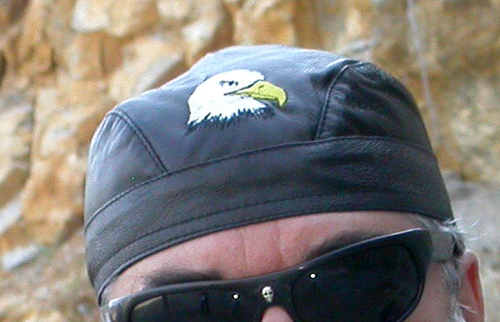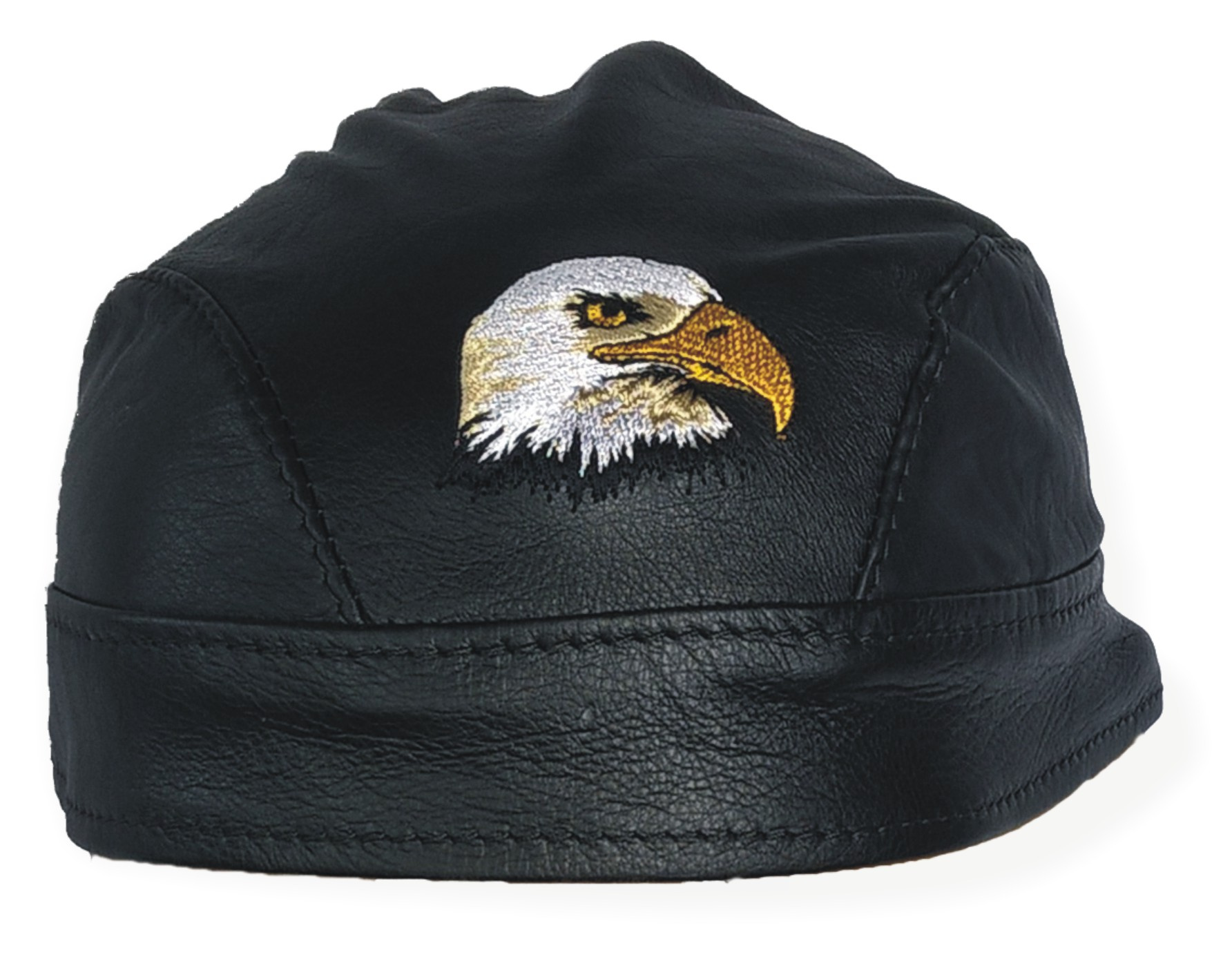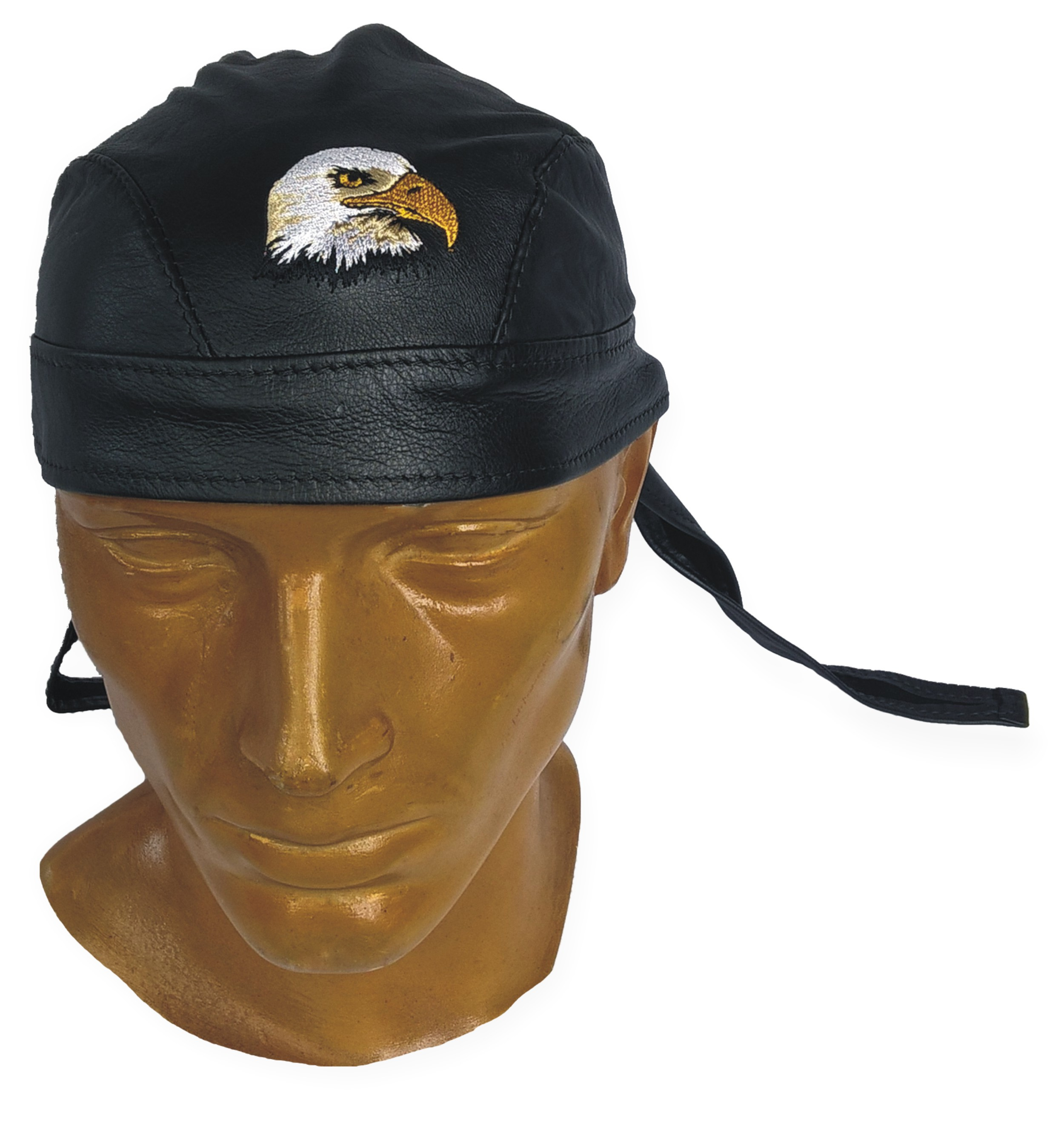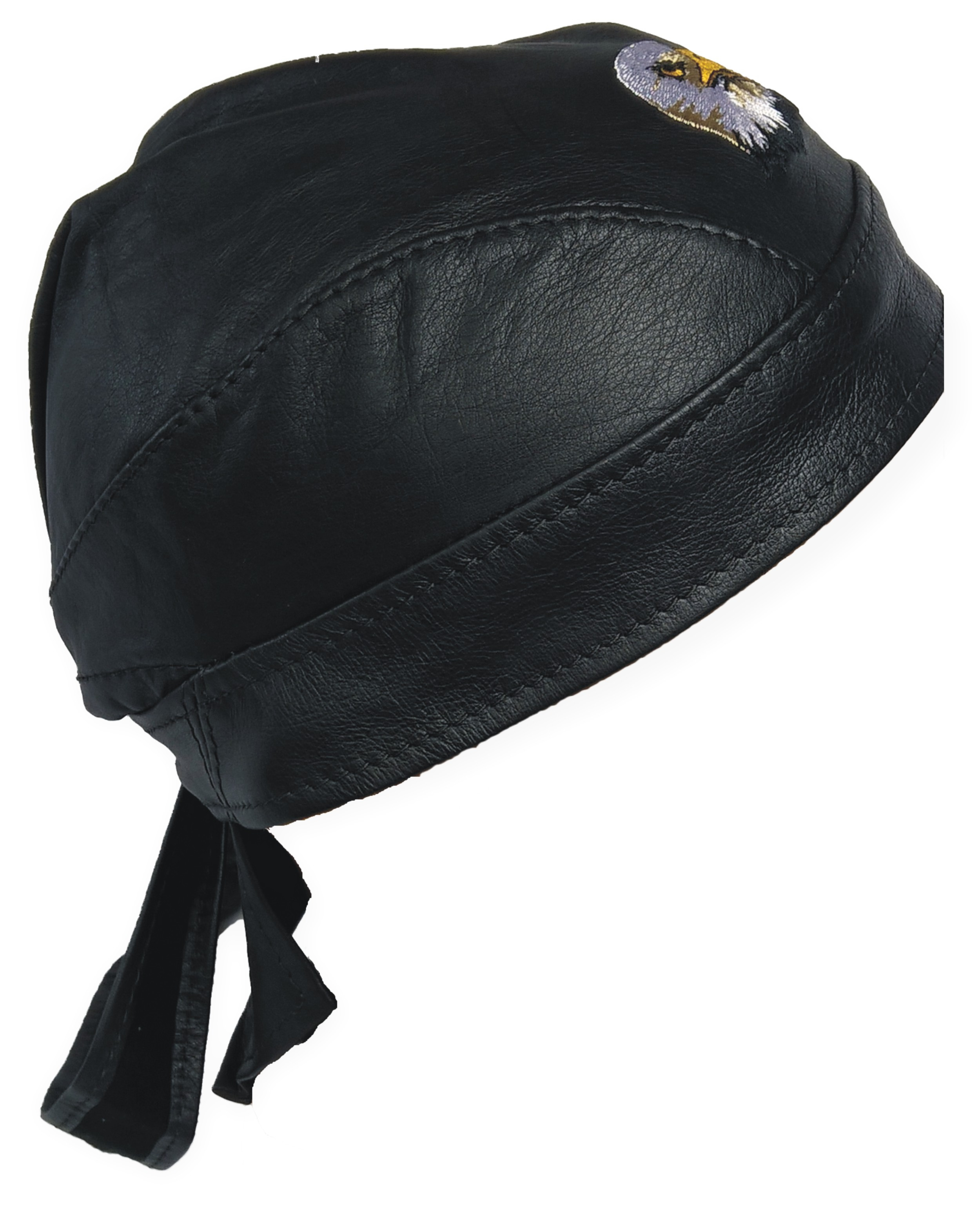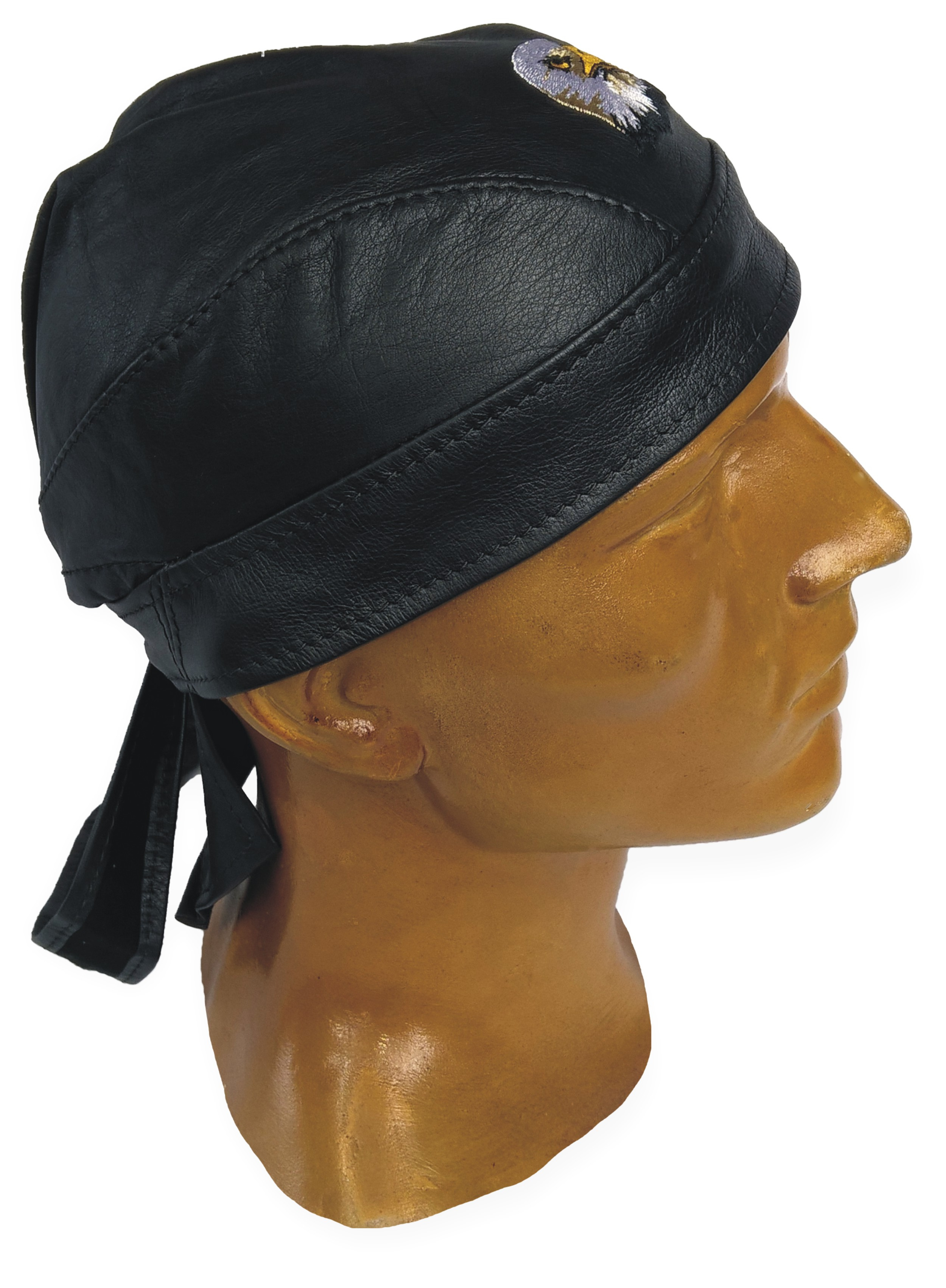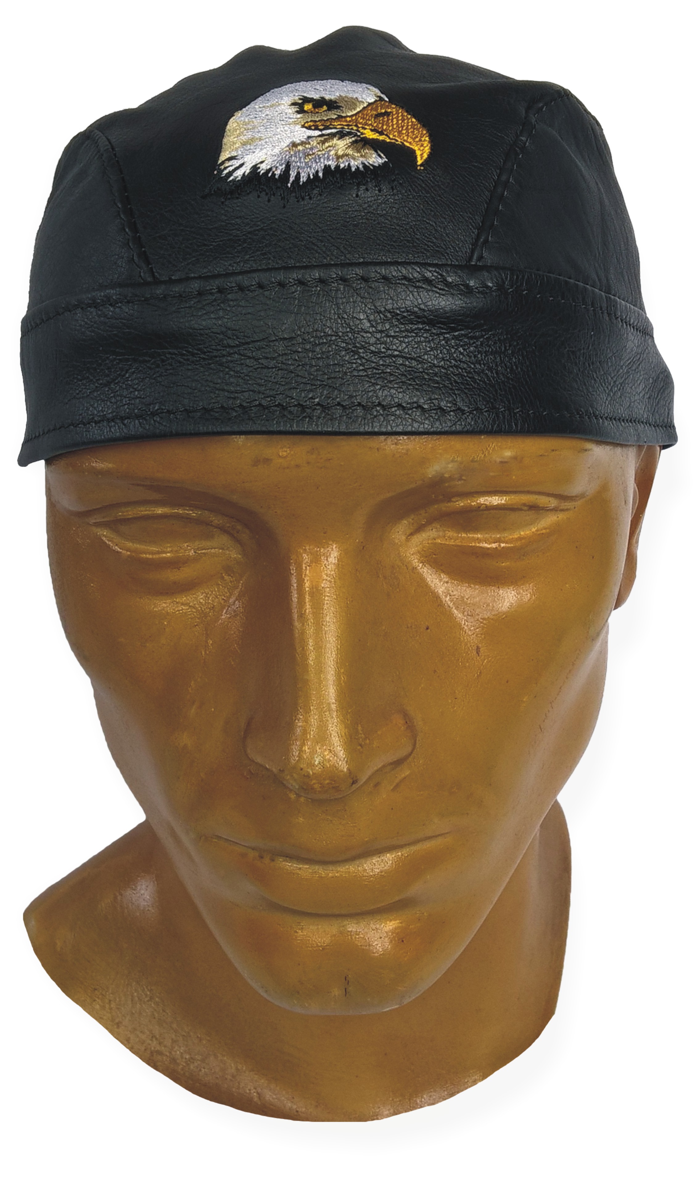 Luxusní kožený šátek-čepička Harley s výšivkou.