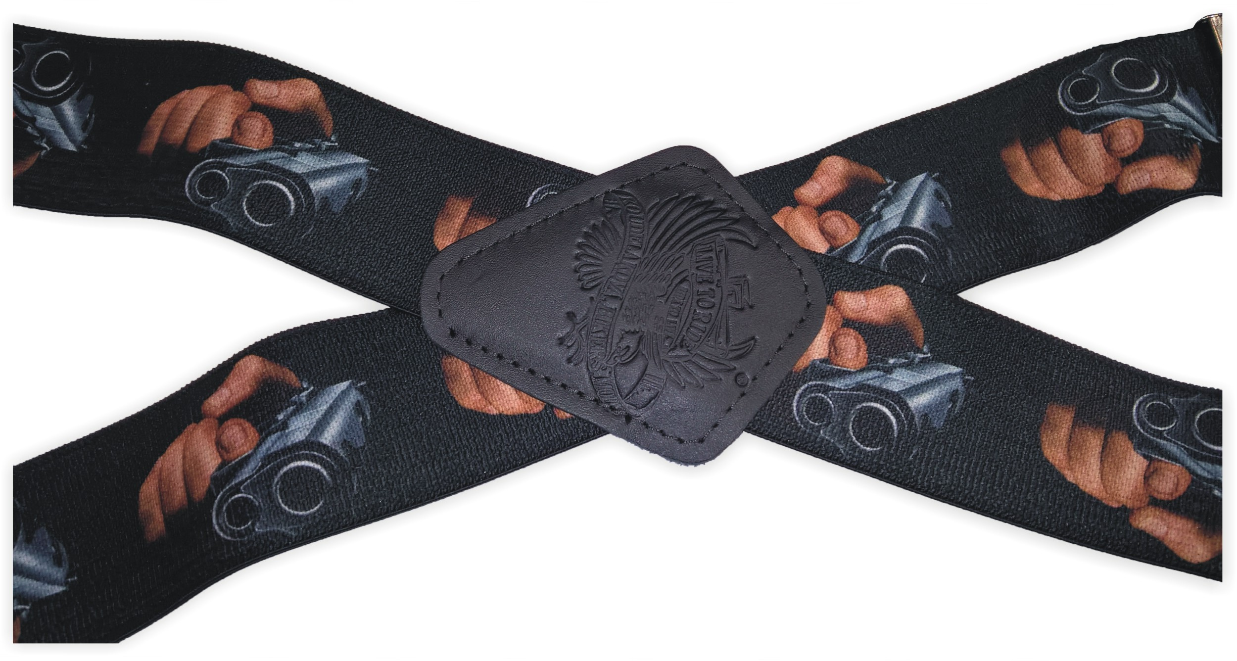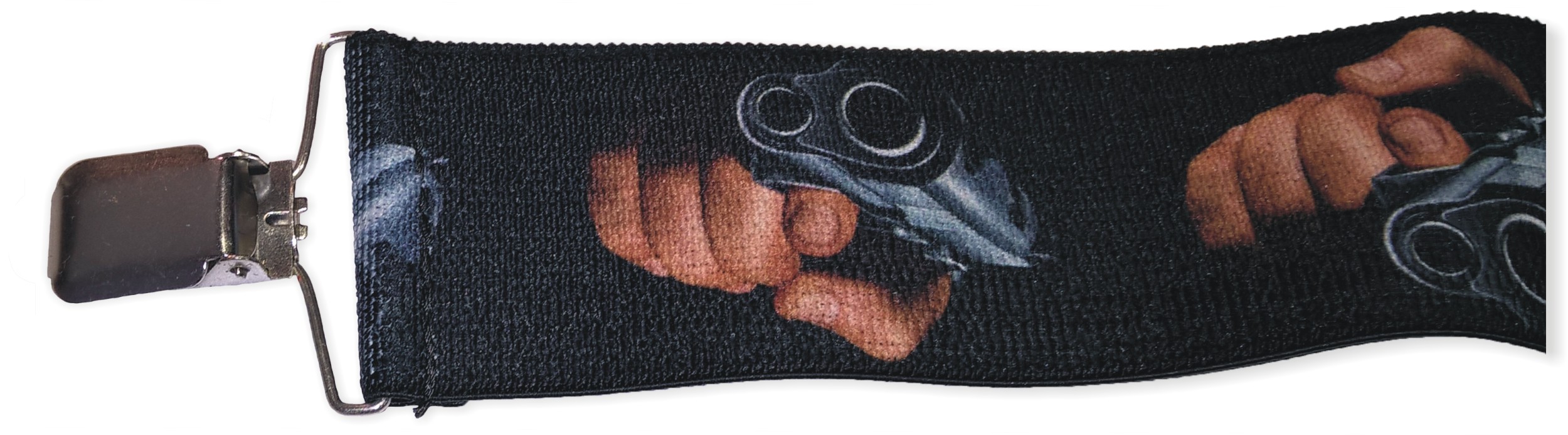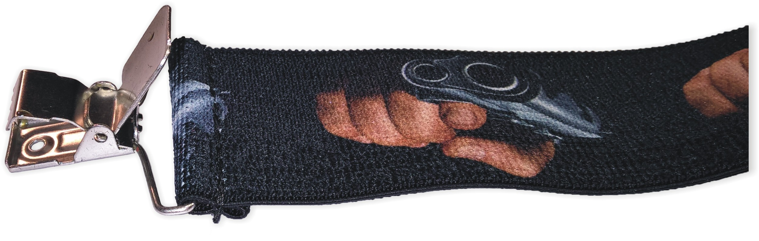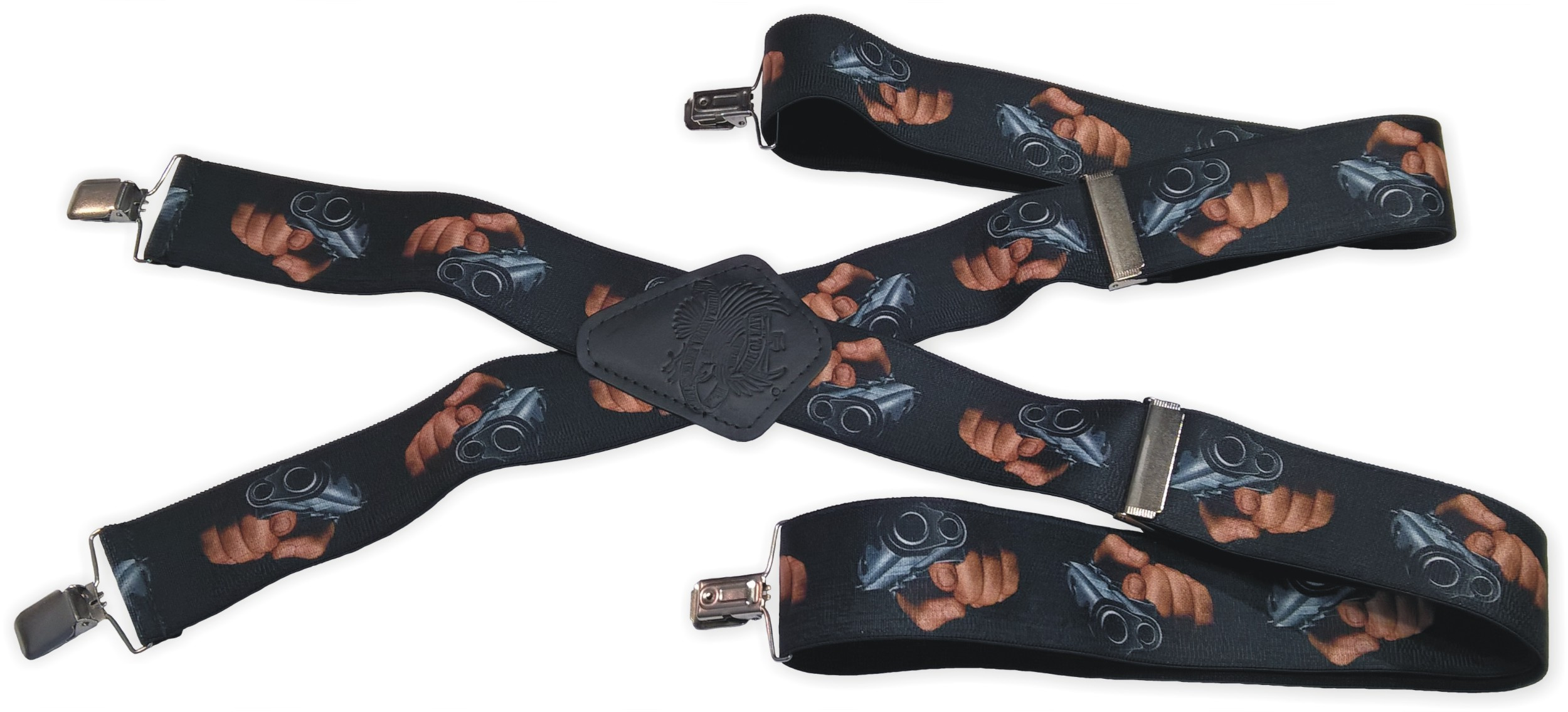 Pružné kšandy s potiskem. Libovolně nastavitelné. Připnutí ke kalhotám je tvořeno kovovými sponkami, které jsou ozubené a tudíž výborně drží a nepovolí.