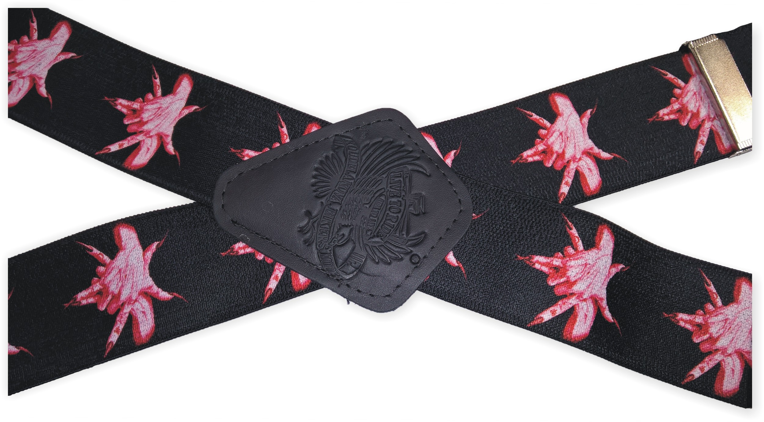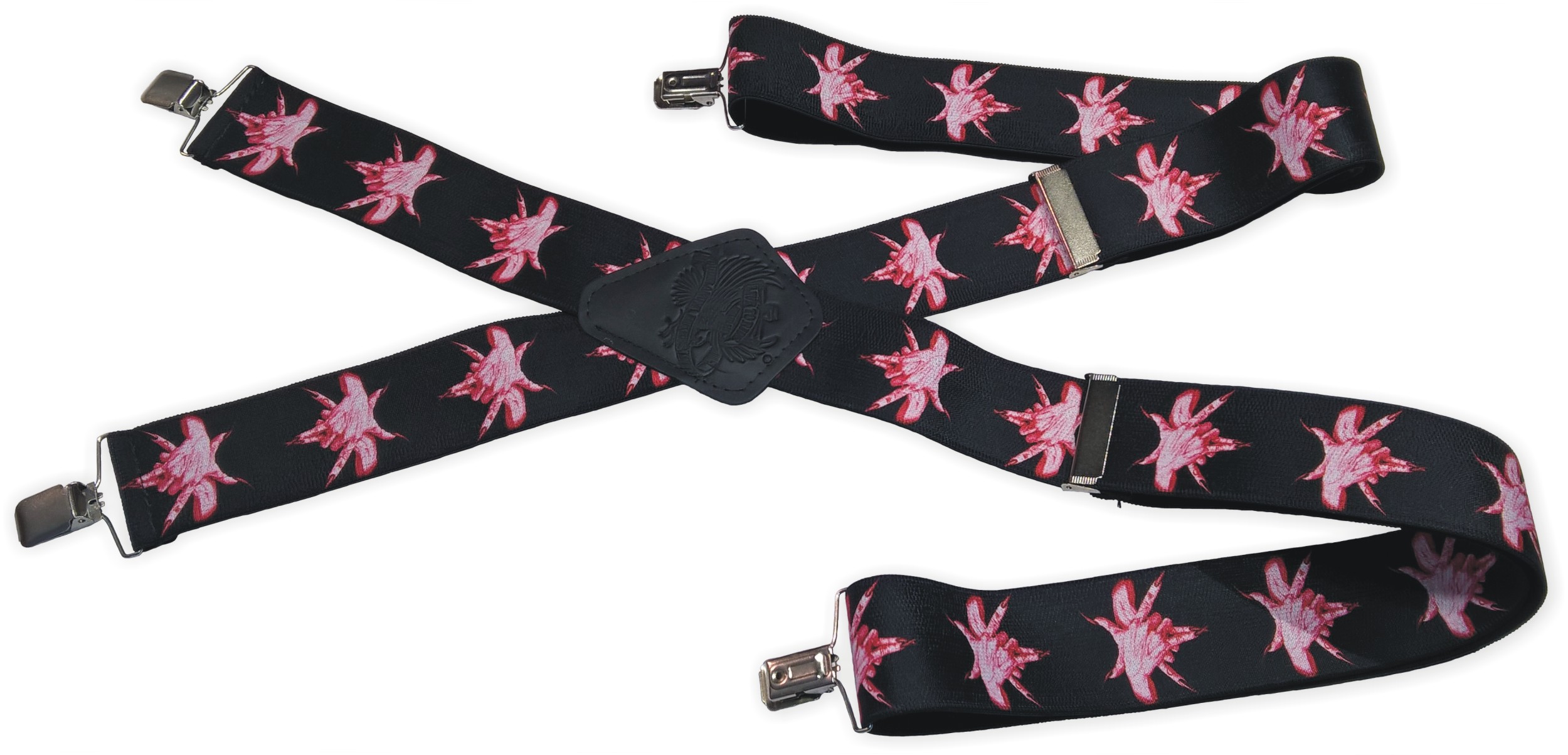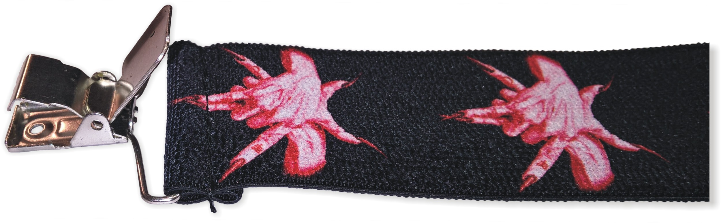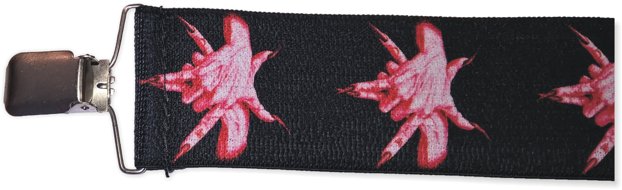 Pružné kšandy s potiskem. Libovolně nastavitelné. Připnutí ke kalhotám je tvořeno kovovými sponkami, které jsou ozubené a tudíž výborně drží a nepovolí.