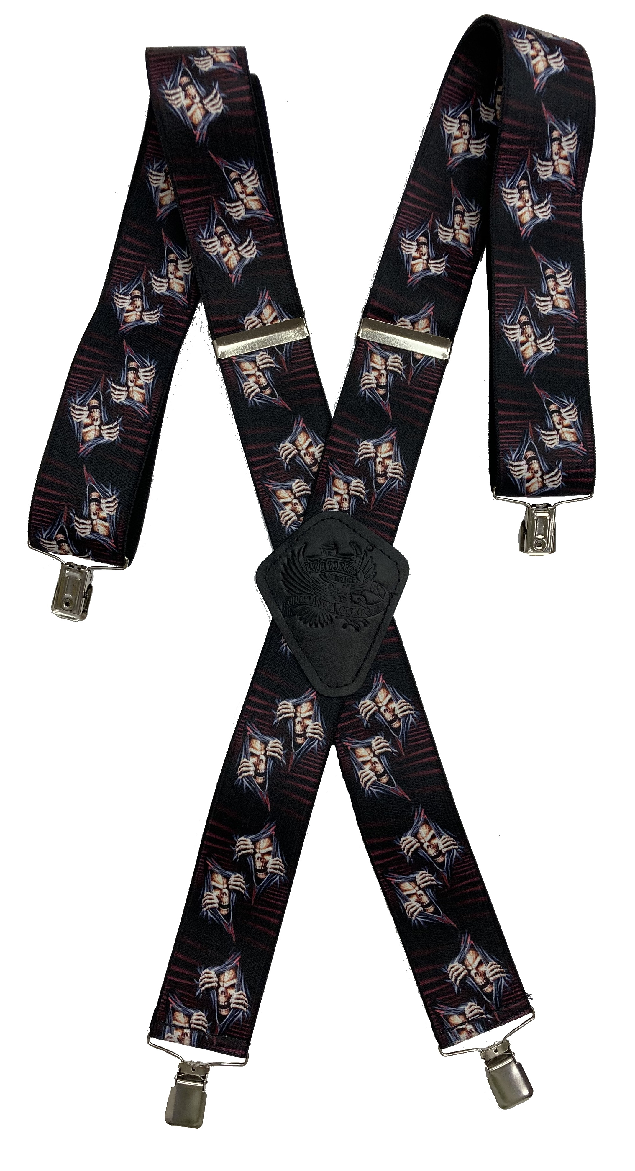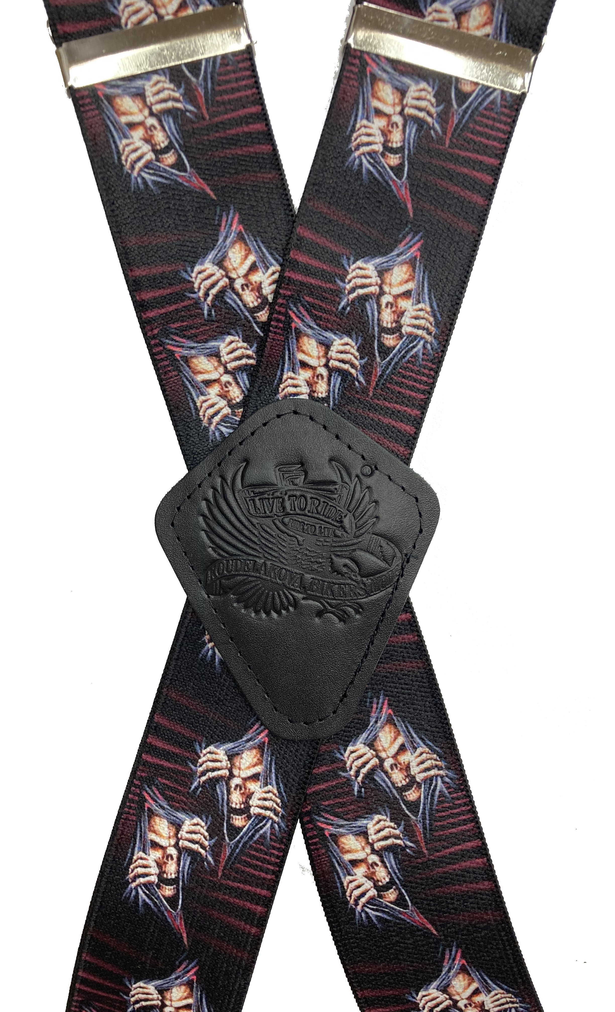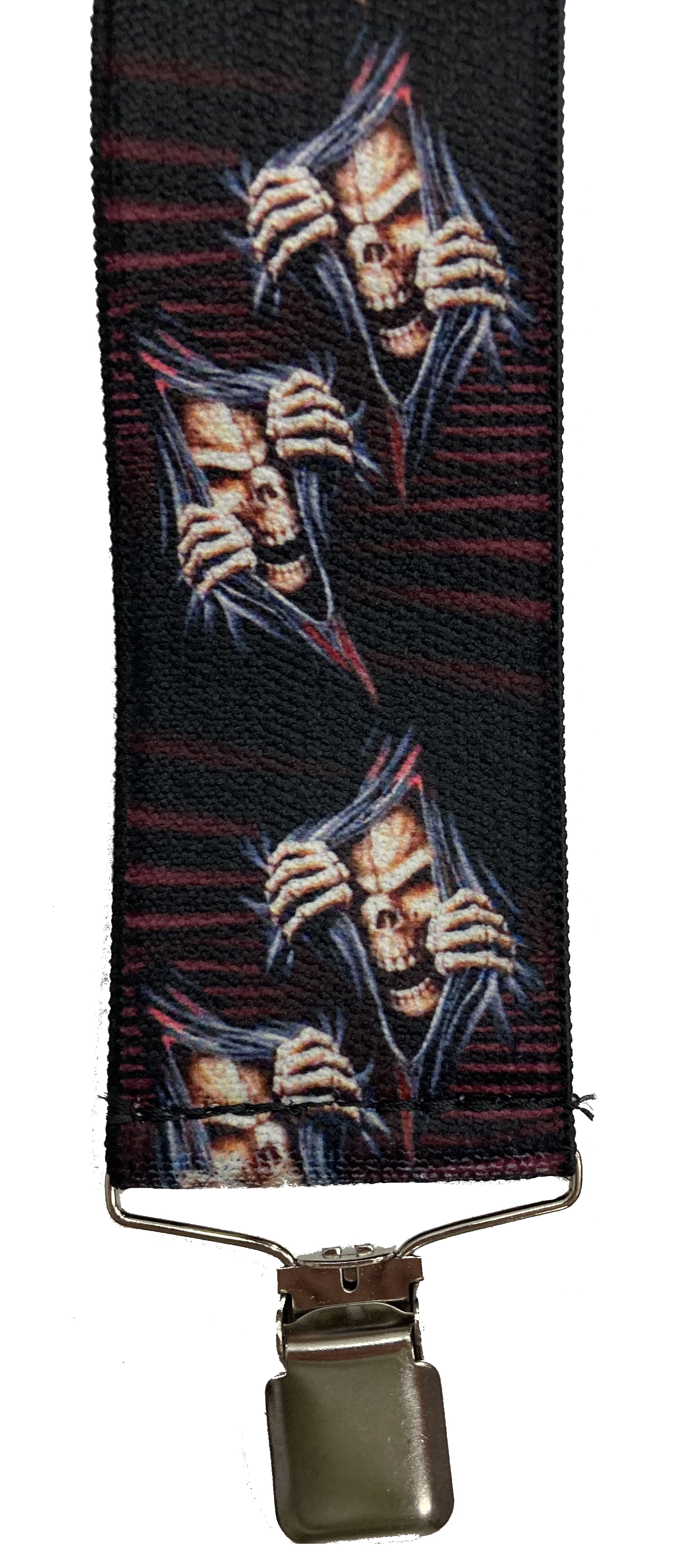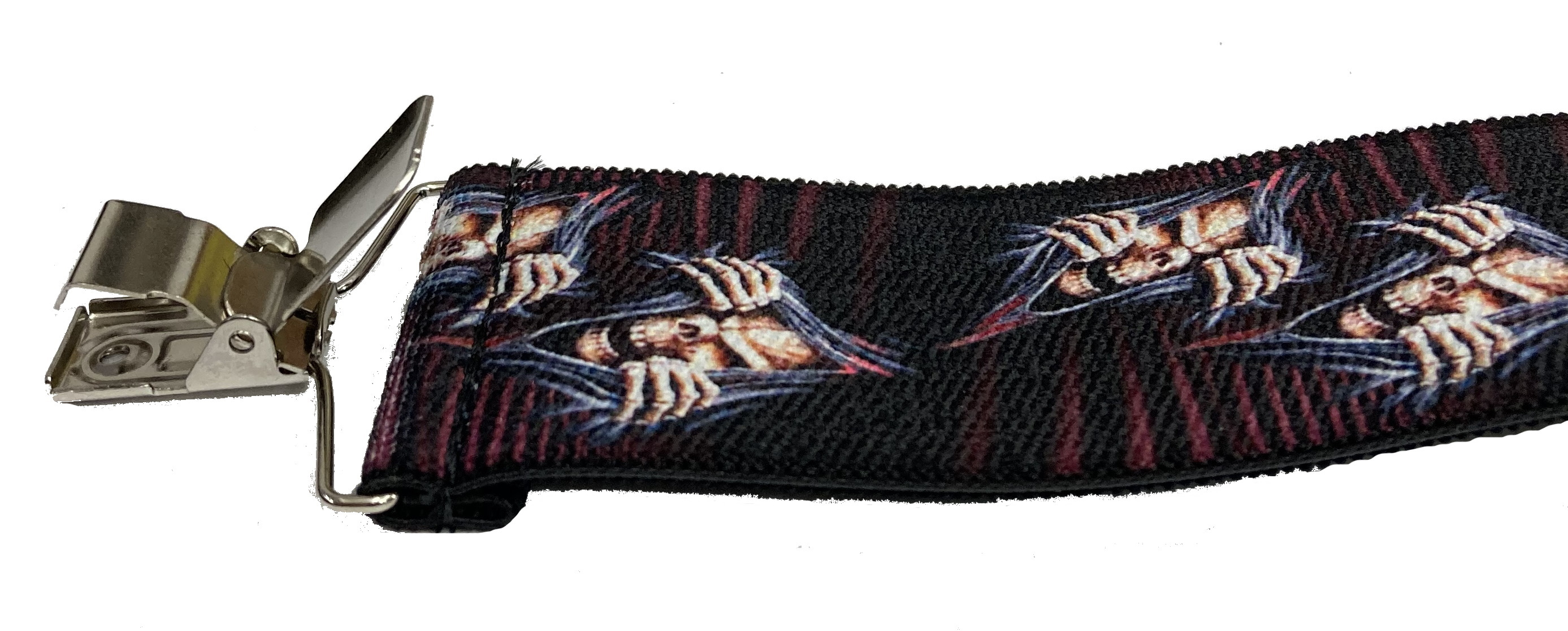 Pružné kšandy s potiskem. Libovolně nastavitelné. Připnutí ke kalhotám je tvořeno kovovými sponkami, které jsou ozubené a tudíž výborně drží a nepovolí.