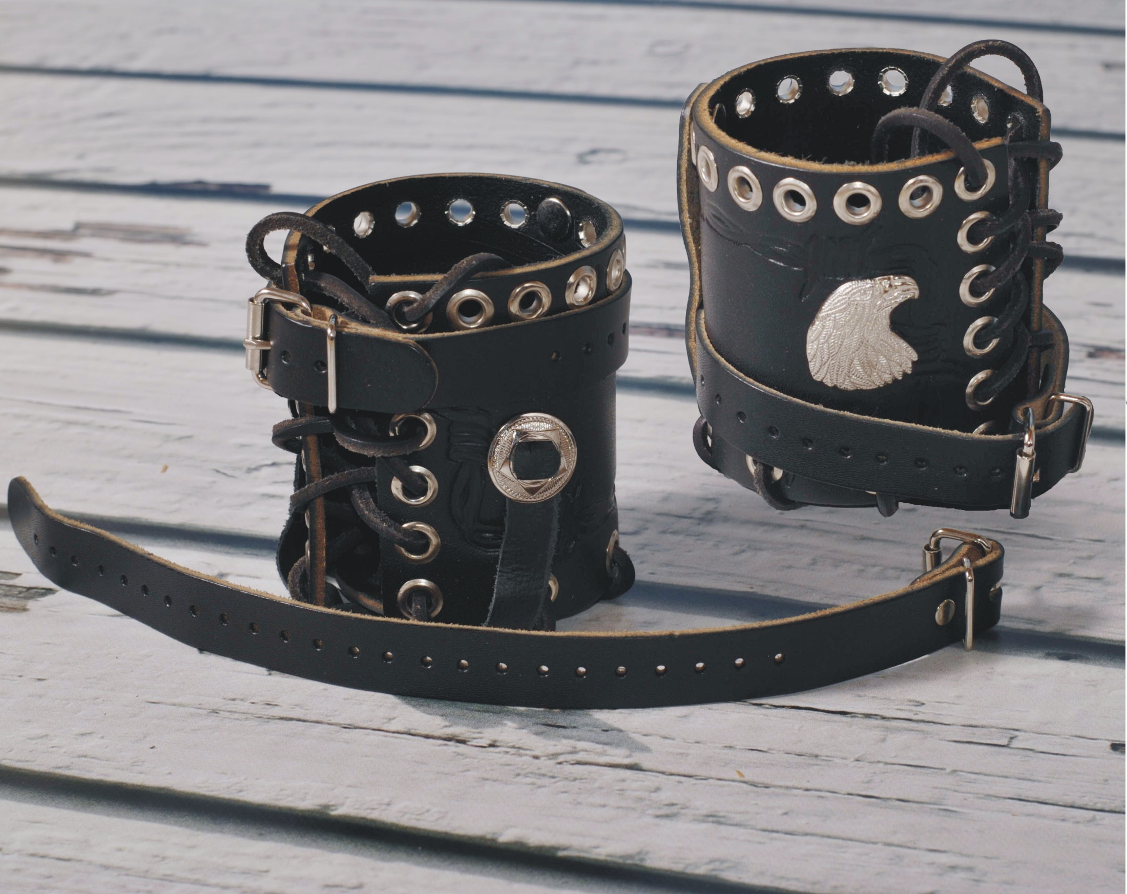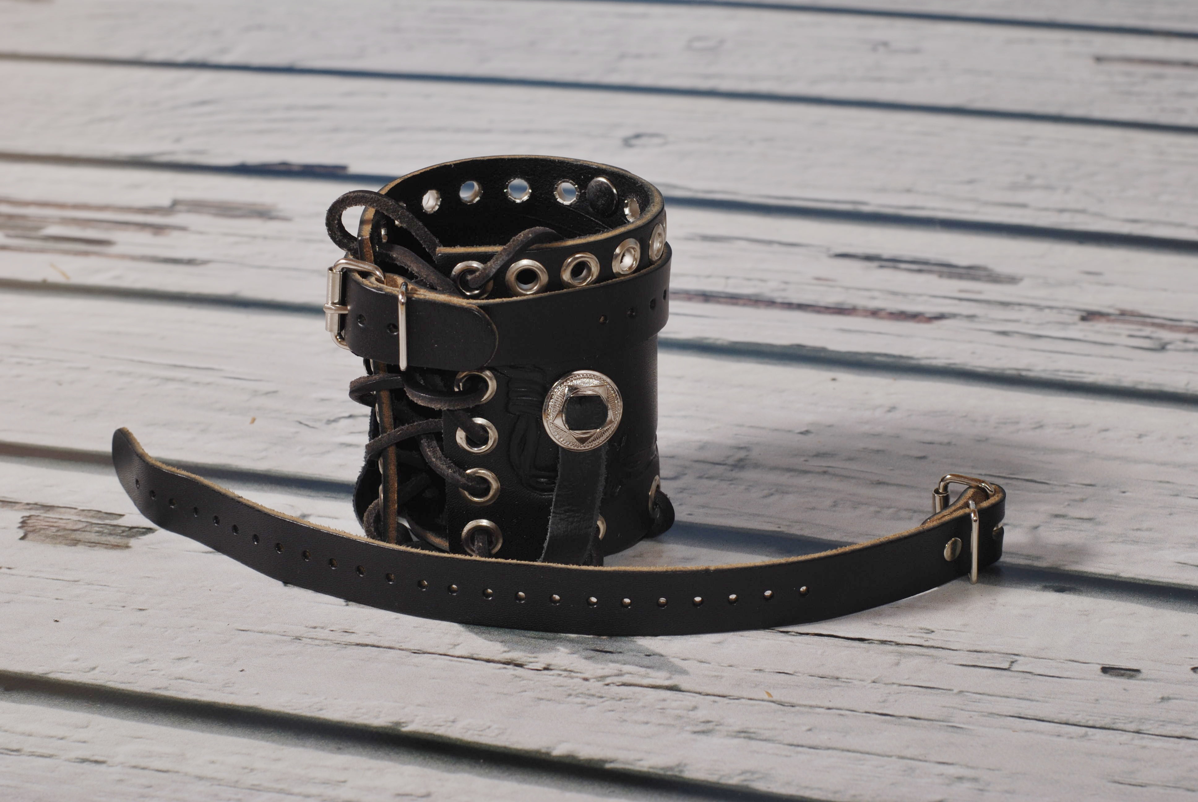 Držák, obal na plechovku, láhev (vhodný na plechovky, láhve 0,3 a 0,5 L) ap. Možno upevnit na řídítka, padací rám, opěrku, přední vidlici ad. pomocí dvou řemínků. Kvalitní kůže a špičkové zpracování.