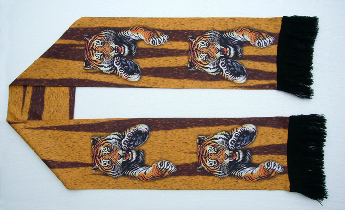Šála s potiskem. Šála je upletena v české republice patentovanou technologí a poté potištěna, díky čemuž lze docílit vysoké kvality a rozlišení grafiky. Potisk není omezen počtem a odstíny barev.