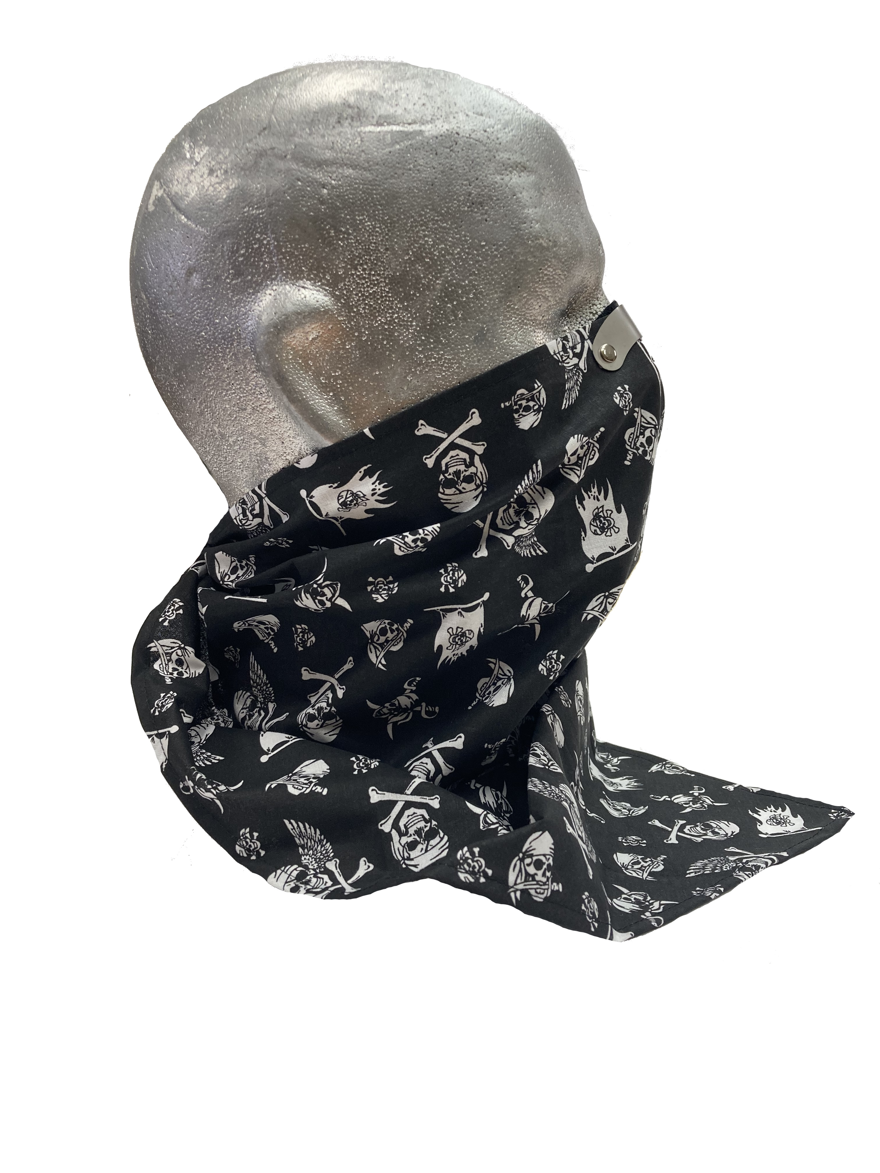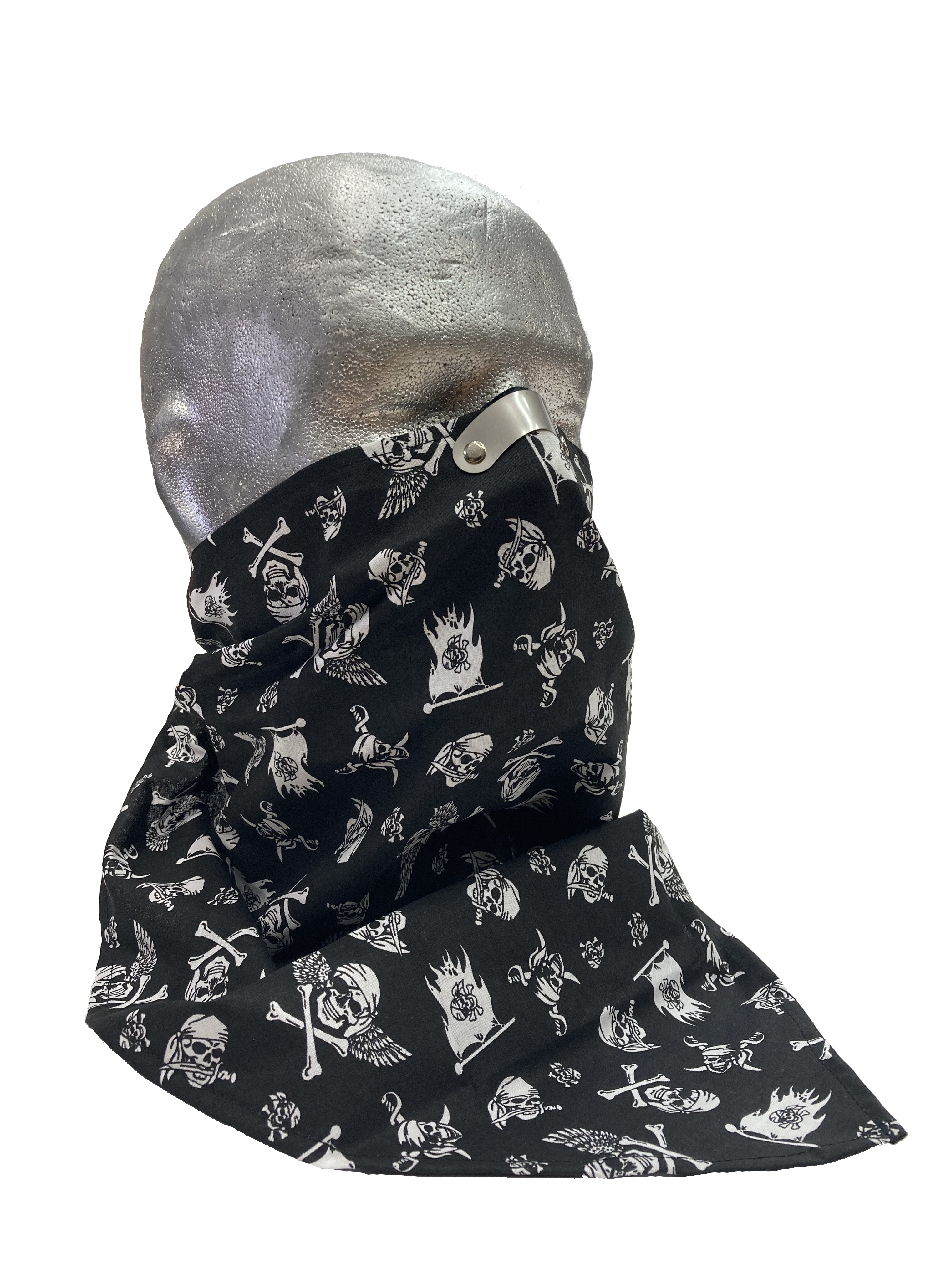 Velký trojúhelníkový šátek s kovovým skřipcem na nos a s jedinečným motivem. Díky kovovému skřipci, který lze vytvarovat podle tvaru nosu, šátek drží na obličeji i při vyšších rychlostech. Díky materiálu a technologii tisku je prodyšný, ale přitom chrání obličej před větrem, hmyzem ap. Šátek na obličej/hlavu upevňujeme zavázáním cípů šátku. Vhodný doplněk k otevřeným helmám.