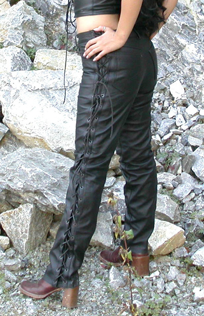 Motorkářské kalhoty z nejkvalitnější hovězí kůže jeansového střihu se šněrováním BIKERSMODE KP-1.