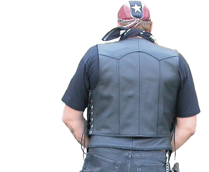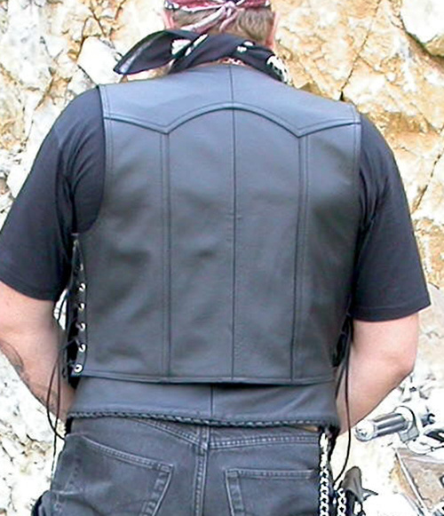 Motorkářská vesta klasického střihu se šněrováním na bocích z nejkvalitnější hovězí kůže BIKERSMODE VP-1.