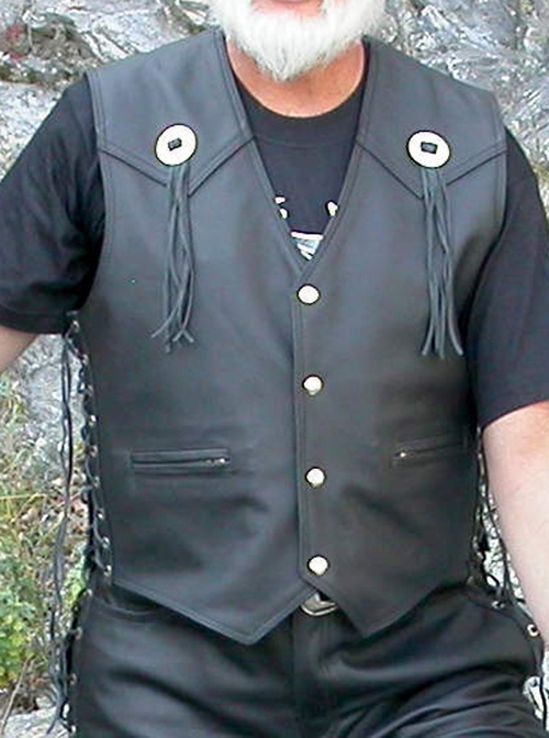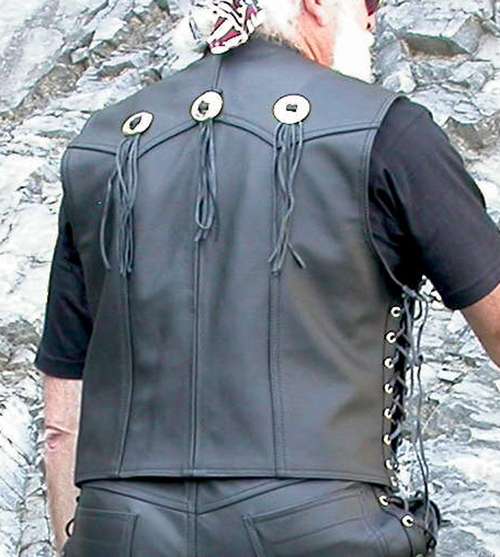 Motorkářská vesta klasického střihu se šněrováním na bocích z nejkvalitnější hovězí kůže BIKERSMODE VP-4.
