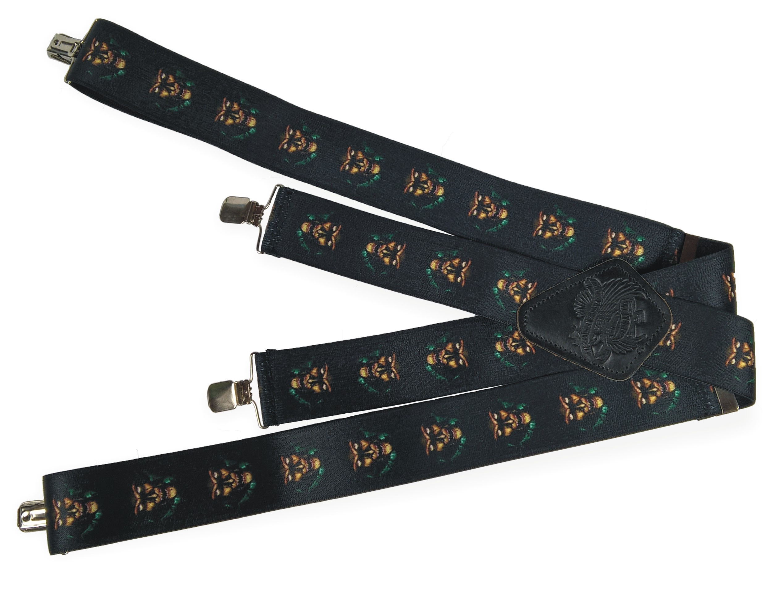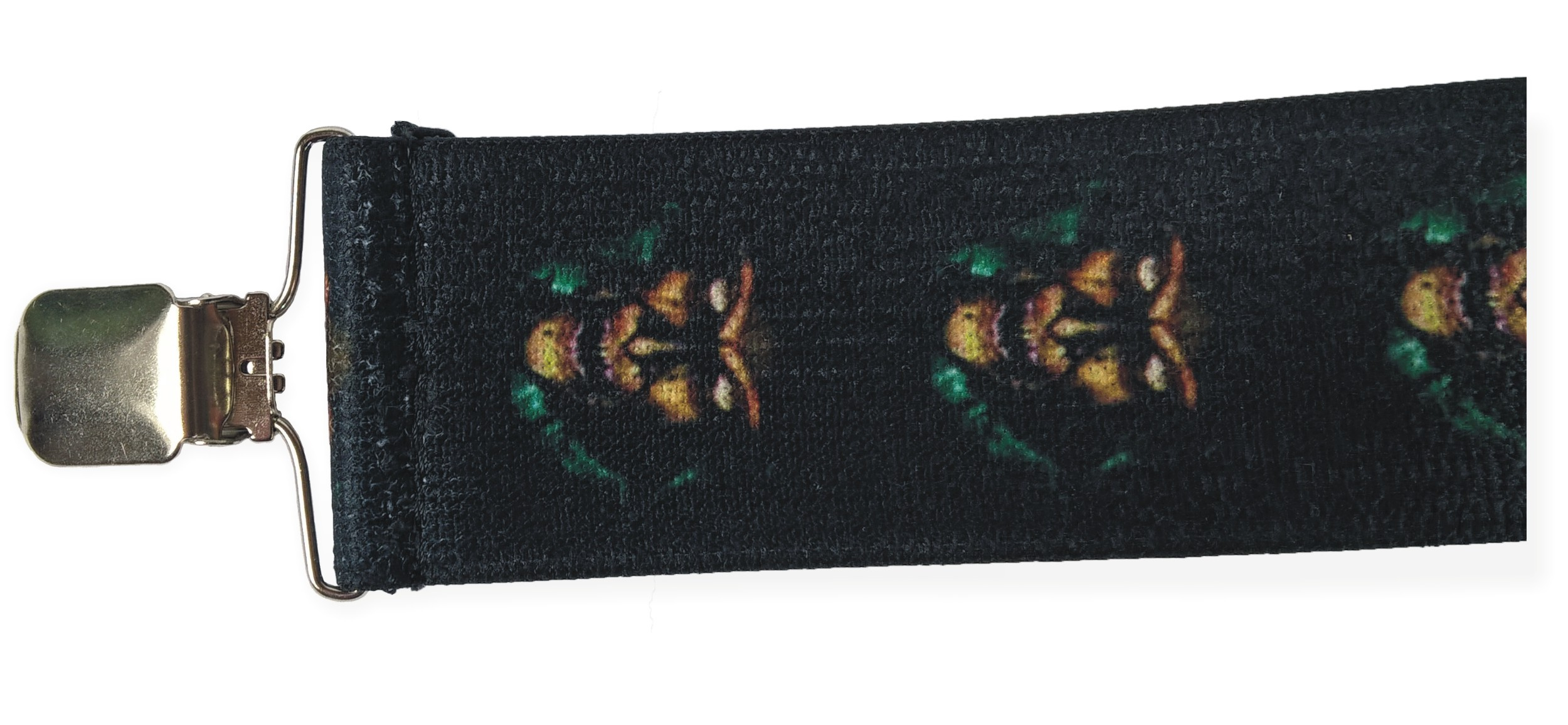 Pružné kšandy s potiskem. Libovolně nastavitelné. Připnutí ke kalhotám je tvořeno kovovými sponkami, které jsou ozubené a tudíž výborně drží a nepovolí.