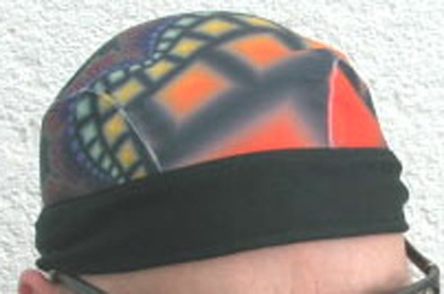 Kvalitní textilní šátek-čepička na hlavu se stylovým potiskem.