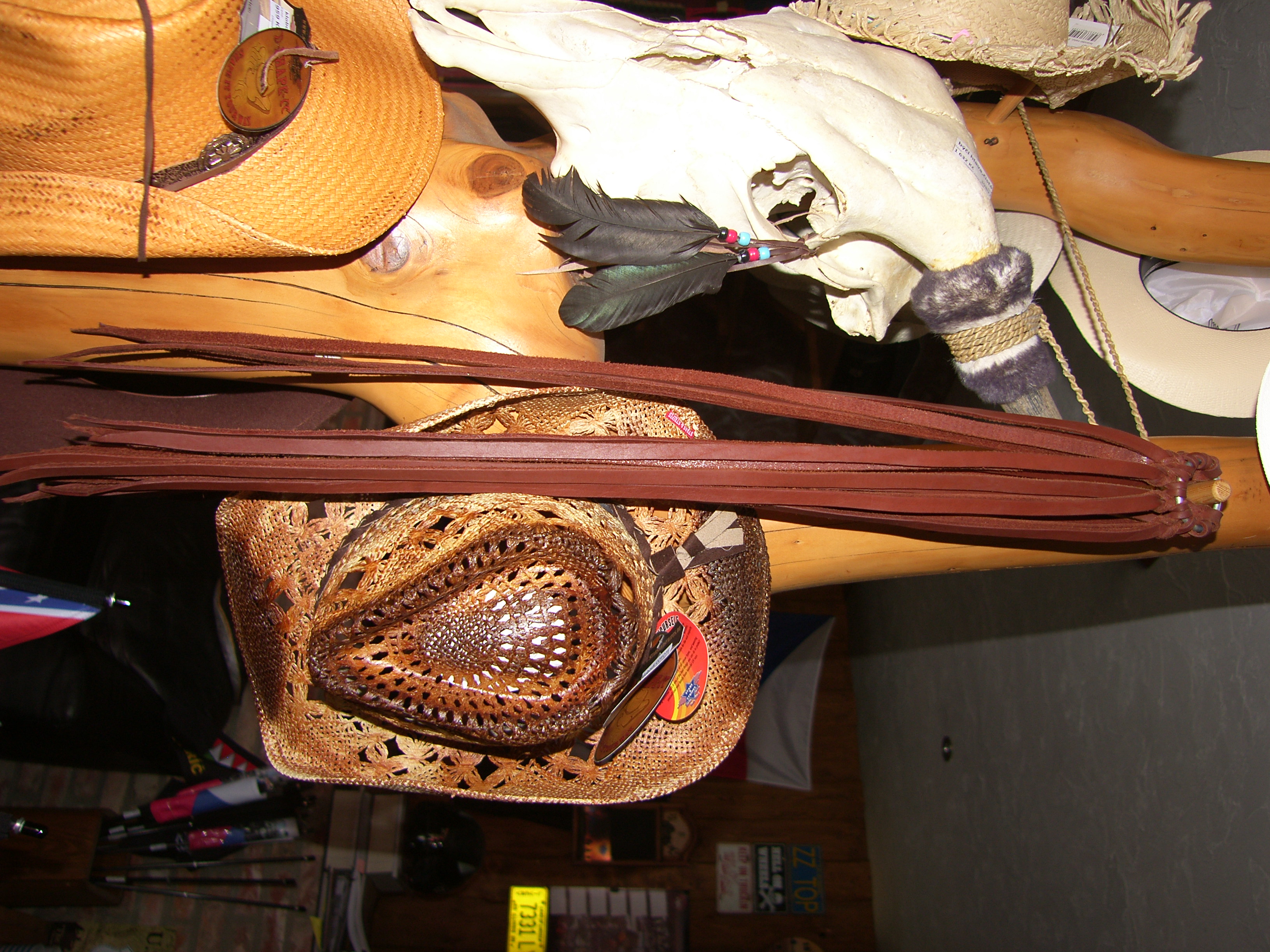 Kožené řemínky k sedlu. Ve střední části dva prořezy pro prostrčení a uvázaní ke kroužku, karabině nebo poutku. Praktická a stylová pomůcka pro připevnění břemena, oblečení ap. k sedlu nebo postroji.